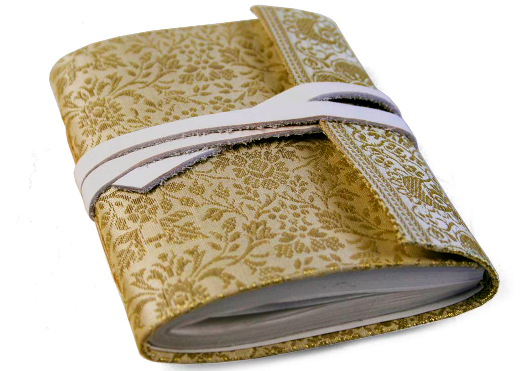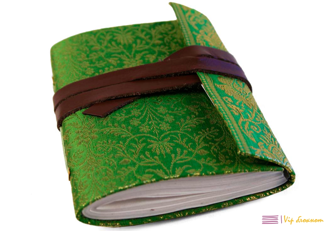 Маленькая записная книжка Сари сделана из классической ткани, изготовленной вручную в Индии с использованием шелковой нити. Имеет кожаный ремешок, который обвивает записную книжку два раза, закрывается конвертом. Очень популярный и приятный дизайн. Это продолжение нашей коллекции из Индии "Сари".