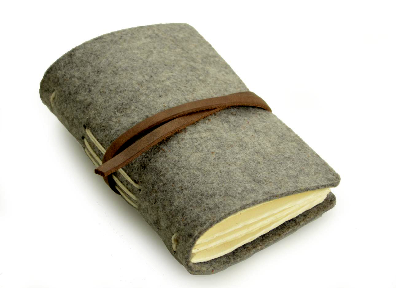 Записная книжка из шерсти Эпитафия с ремешком полностью изготовлена в США, включая бумагу ручной работы. Уникальная в своем роде обложка сделана из 100% натуральной шерсти мериноса толщиной 3 мм, которая покрашена в различные цвета и имеет оригинальный, необычный и неповторимы внешний вид. Записная книжка имеет стандартный размер 9 х 13 см, закрывается книжечкой и закрепляется красивым кожаным ремешком. 96 страниц ручной работы позволят Вам писать любыми ручками, карандашами и рисовать кистью. Записная книжка также легко помещается в карман, в сумочку, и Вы с удовольствием сможете взять ее в путешествие для заметок или в командировку для записей своих идей.