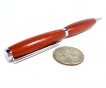 Тонкая шариковая ручка из дерева ручной работы является отличным способом показать Ваш неповторимый стиль на работе, в школе и университете или дома, а вместе с классической кожаной записной книжкой ручка будет выглядеть очень гармонично и роскошно. Ручка продается вместе с красивым кожаными футляром, прошитым контрастной нитью. Верхняя и нижняя части ручки полностью изготовлены из натурального красного дерева Падаук с характерным рисунком и хромированным покрытием. Ручка открывается поворотом верхней части относительно нижней.